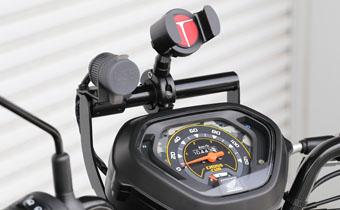 ●USB電源ソケットや各種端末のマウントに重宝するマウントステー。端末等をマウントした際に視認し易い拘りのレイアウトが特徴。一般的なハンドルパイプ径と同じ22.2mmなので、マウント類の選択肢も豊富です。