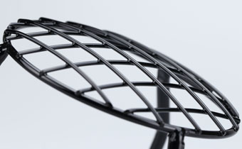 ●アウトドアスタイルのエッセンスとなる「ヘッドライトストーンガード」は、拘りのドーム型ガードや格子状に配されたワイヤーが特徴的。外観美だけでなく走行中に起こり得る飛び石等のリスクを軽減する製品です。