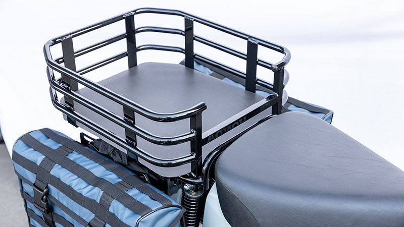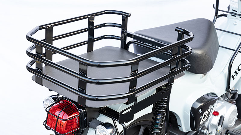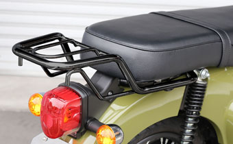 スーパーカブ・クロスカブの純正キャリアの上に載せるバスケットタイプのキャリアラック。