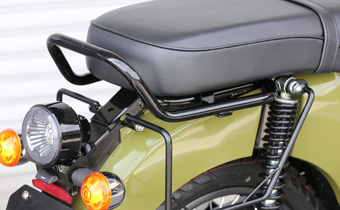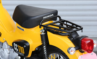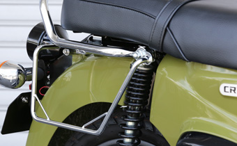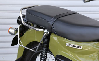 実用車色の強いカブにカジュアルテイストを加えるダブルシート。通勤・通学からレジャーまで多く場面で活躍します。