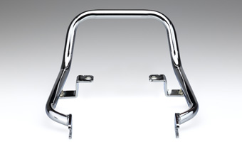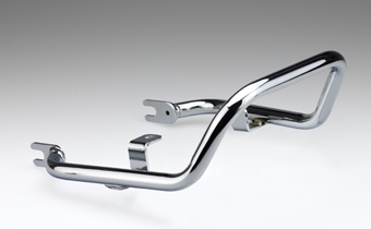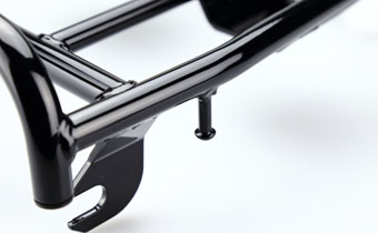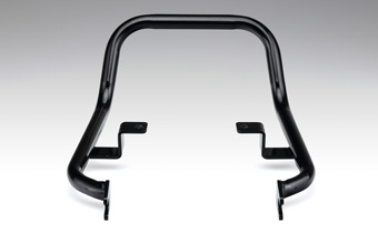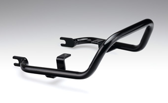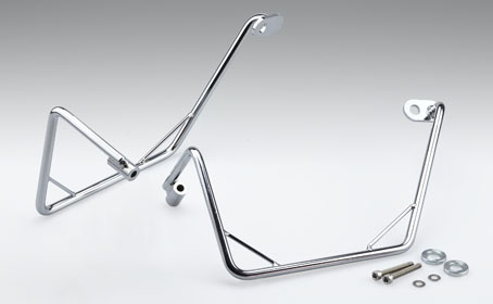 サイドバッグ装着時、タイヤへの巻き込みリスクを軽減しバッグ装着安定度が向上するバッグサポートです。別売のベルトフックを併用すればより安定度の高い装着感が得られます。
