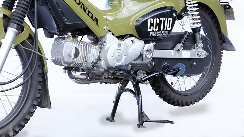 ●キャンプツーリングや釣りなどのレジャーで活用されることが多いクロスカブ110ですが、純正サイドスタンドでは,緩い地盤や荷物満載時に駐輪をする際、転倒してしまう危険性が有ります。