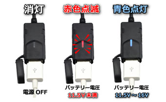 車体の電圧状態をブルー&レッドのLEDインジケーターによりお知らせいたします