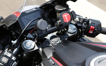 ●USB電源ソケットや各種端末のマウントに重宝するマウントステー。一般的なハンドルパイプ径と同じ22.2mmなので、マウント類の選択肢も豊富です。