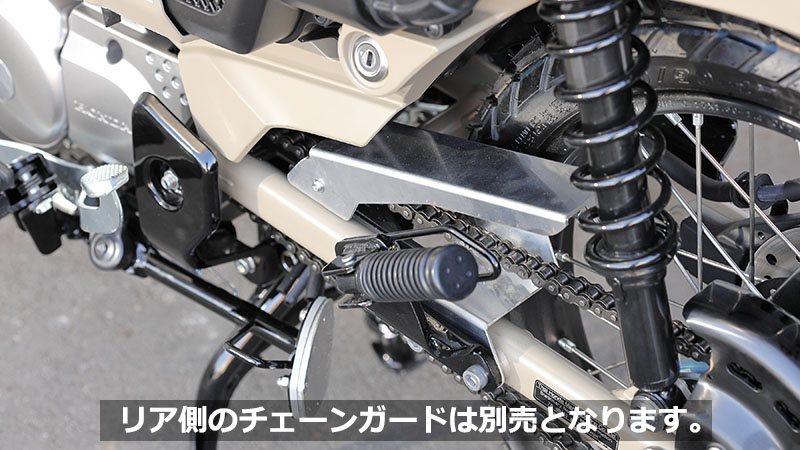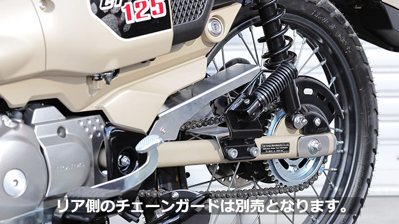 ●CT110ハンターカブのチェーンガードデザインを踏襲しつつ、CT125向けに材質を吟味し、デザインに拘ったチェーンガードです。
