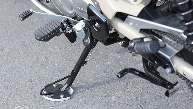 ●未舗装地などの駐車でサイドスタンドが沈みにくくなるワイドプレート。