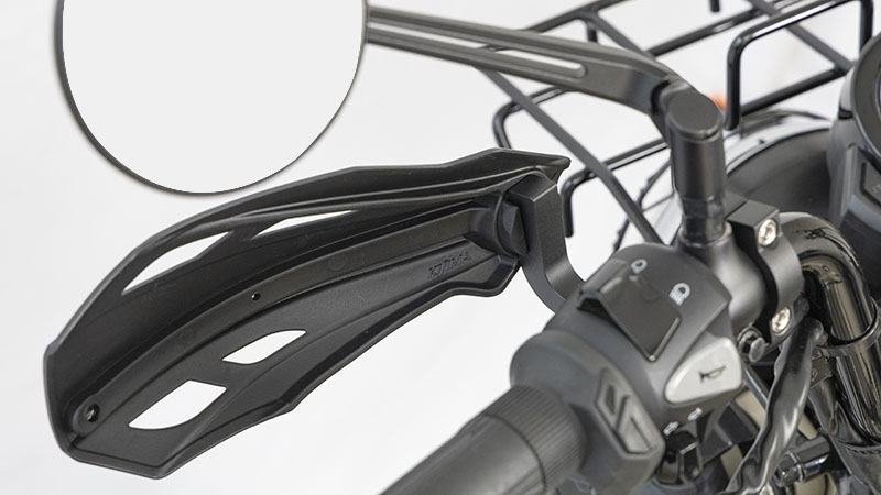 走行風をやわらげ、手元をしっかりガードするナックルガード。