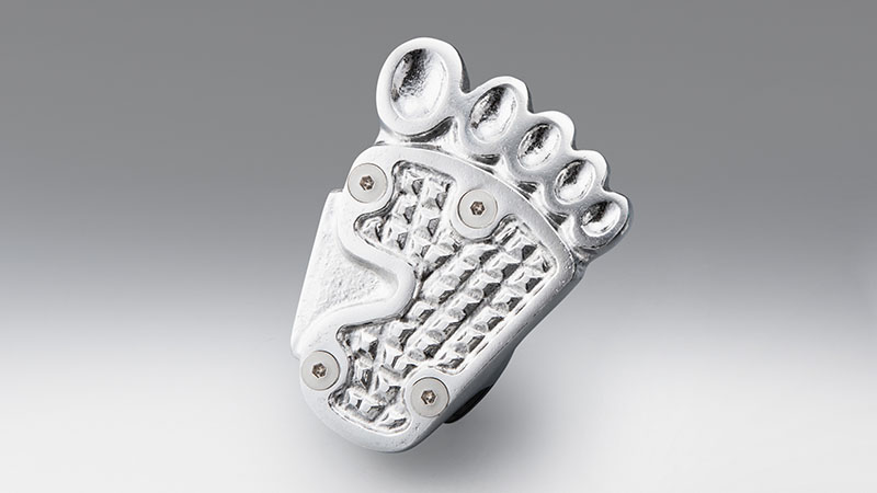 アルミ鋳造製法により成形された靴の底は、質感と可愛らしいデザインで車体の雰囲気を和ませます。