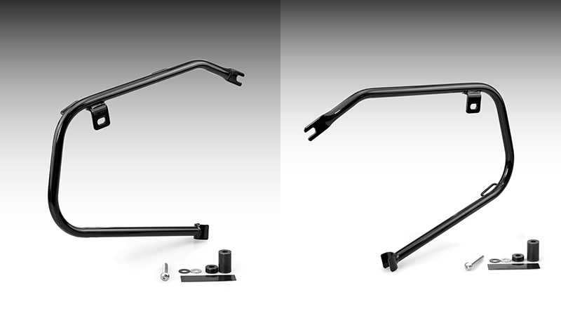 ●サイドバッグ装着時におけるタイヤへの巻き込みリスクを軽減し、さらには綺麗にバッグを取り付けるための必需品であるバッグサポート。