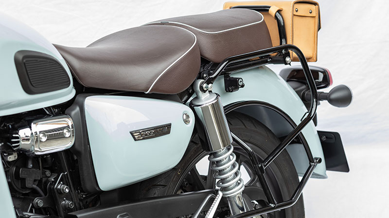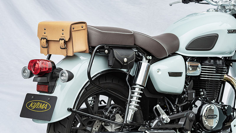 バッグを装着していない状態でも車体のスタイルを保つよう、パイプ径や曲がり具合、艶ありの塗装にこだわり、レトロな落ち着いた外観に仕上げています。