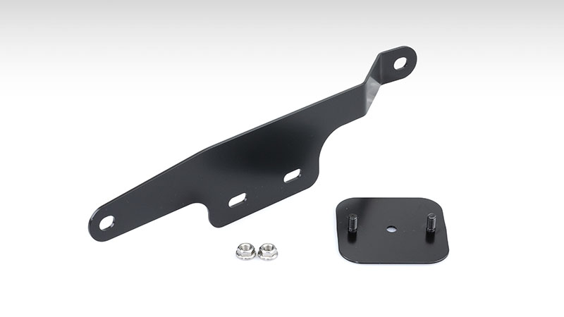 前側はステーを使ったボルト固定、後側は高耐久の両面粘着テープを使用することで、車体へのダメージを与えずに装着が完了します。