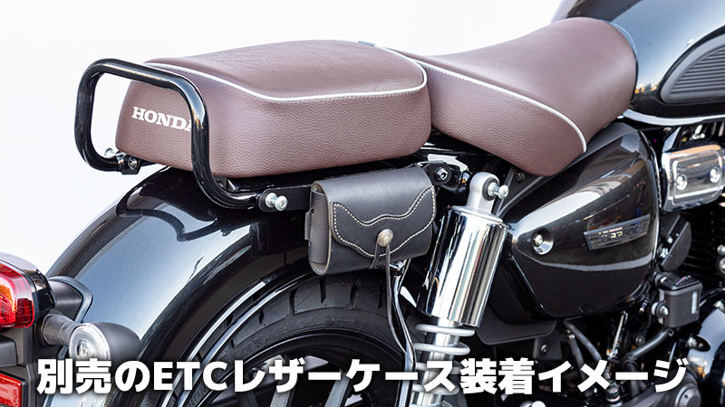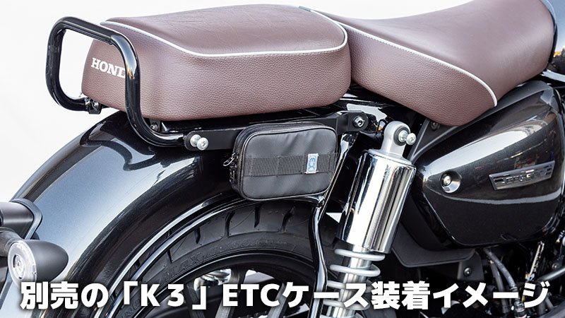 日本無線社製「JRM-11/21」やミツバサンコーワ社製「MSC-BE51/51W/61/61W/BE700E/S」を別売のETCケースへ収納し、車体右側フェンダー部分のフレームへ装着致します。