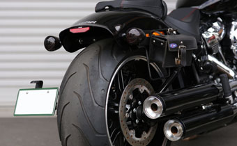 また、ランプ類は純正のコンビランプをそのまま生かすも良し、別売LEDスリムテールキットにカスタムウインカーの装着もよし。カスタムの幅が広がるナンバーサイドマウントキットです。 ※画像のリフレクターは別売です"305-2152"のご使用をお勧め致します。 ※本製品を使用しての車両検査はご使用者の責任のもと行って下さい。事実上、各地の陸運局により判断基準が異なる為、検査前に車検業者へ相談及びご確認下さい。 ※オールインワンタイプバッグガードとの併用はできません。 付属品:本体/LEDナンバー灯 適合:BREAKOUT(FXBR/S)18Y-・STREETBOB(FXBB)18Y-・FATBOB(FLFB)18Y-・LOWRIDER(FXLR)18Y- |