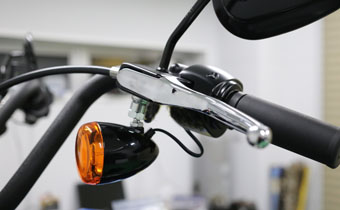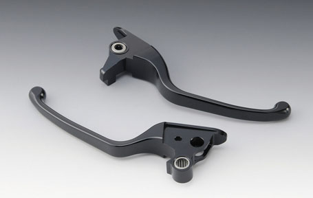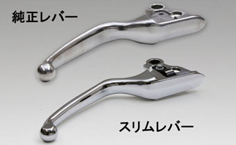 レバーの引手部分をスリムにする事で握り心地を改善し、クラッチ操作等による疲労を軽減する「スリムレバー」です。また、稼働部分にはベアリングが圧入されているため、滑らかな動きを得られます。さらに、アルミビレットの造形・質感はハーレーに劣らない仕上がりとなっております。