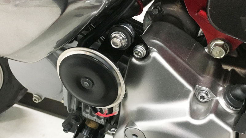 ※取り付けるホーンのサイズによっては車体への干渉部へラバーなど張り付けたり、付属のカラー/ボルトを別途用意して頂く等、取り付けられるホーンに合わせて変更を行って下さい。