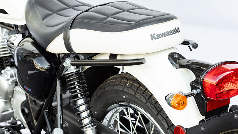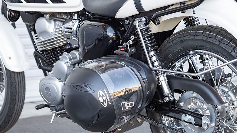 ●W230・メグロS1ついては標準でヘルメットロックが装備されておりますが、使用するためには一旦シートを取り外す必要がございます。