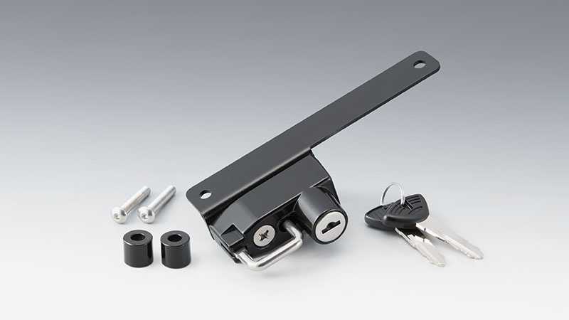●外出先等で重宝するヘルメットロックです。ショッピングや観光中にヘルメットをロックする事で、身軽に行動する事が可能になります。装着箇所は左側シートカウル下。