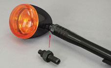 ブレットタイプの純正ウインカー(ねじサイズ5/16"-24山)をフレームマウントウインカーステーに