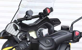 ●USB電源ソケットや各種端末のマウントに重宝するマウントステー。一般的なハンドルパイプ径と同じ22.2mmなので、マウント類の選択肢も豊富です。