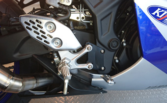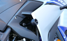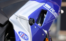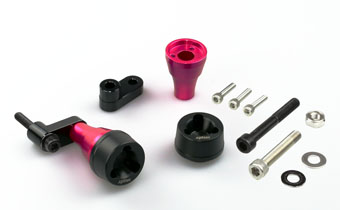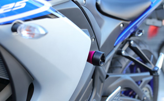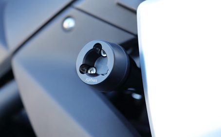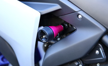 ●転倒時に車体へのダメ―ジを軽減するボディースライダー。カウル面からの突出を可能な限り抑えた設計なので、ストリートでも目立ちません。 左右SET