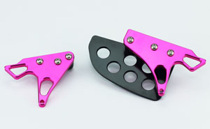 材質:アルミビレット製 色:ピンクアルマイト(フック部)/ブラックアルマイト(スプロケガード部)