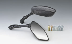 ●軽量強化樹脂ボディーによる流線型のフォルムが車体との一体感、軽快感を演出。アルミビレットパーツの採用で高級感のあるミラーに仕上がっております。