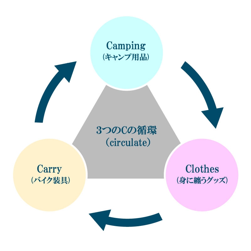 相互に循環させて、トータルなバイクの遊びを提案していきます。