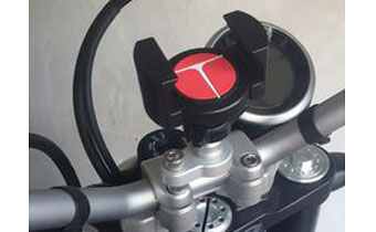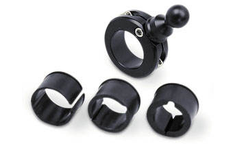●ハンドル等のパイプ部分へ装着可能なクランプ式マウント。ご使用のデバイスに合った4G用アダプターと併せてご使用下
