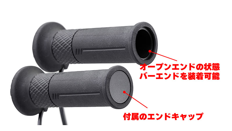 付属のエンドキャップを外せば、純正をはじめ、各種バーエンドに対応可能です
