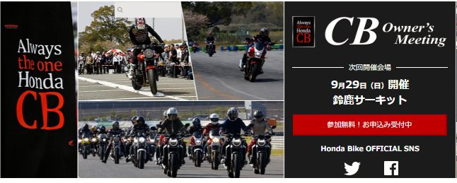 9月29日(日)CB Owner’s Meeting 2019.09.06 「CB Owner’s Meeting」 に出展いたします。会場では「CBシリーズの新商品展示・カスタムパーツ展示」を予定しております。 詳細は>>>コチラ