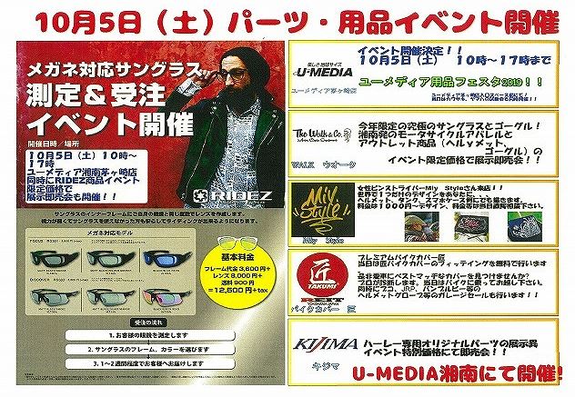 10月5日(土) ハーレーダビッドソン湘南 店舗出展イベント 2019.10.04 2019年10月5日(土)にユーメディア湘南様(ハーレーダビッドソン湘南)にてキジマ店舗出展イベントを行います。 キジマオリジナル商品の展示即売会に話題の”モンダビ”を展示致します。 詳細は>>>コチラ